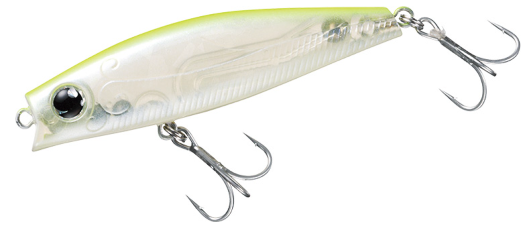 また、超低速から中速域でのリトリーブを得意としており、水面直下を優雅に泳ぐ姿は、まさに弱った小魚そのものです。