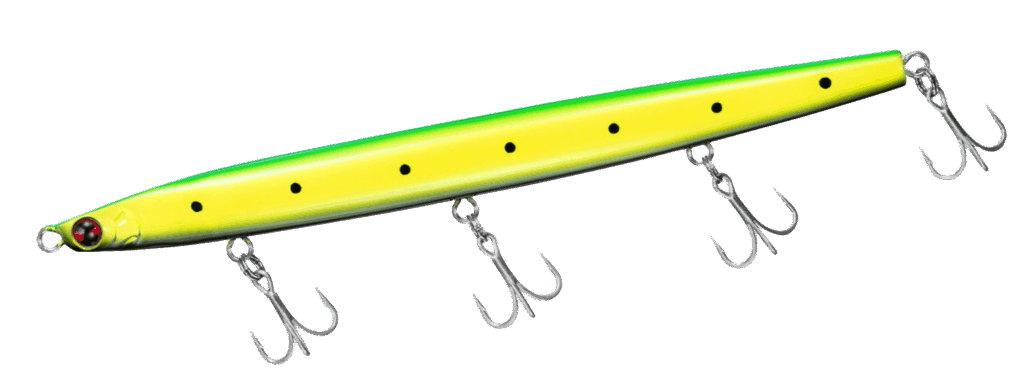 「DH(指名打者)」の名が示す通り、ここ一番の飛距離が欲しい場面や、他のルアーでは風に負けてしまう状況で代打として投入すれば、ホームラン級の釣果をもたらしてくれます。